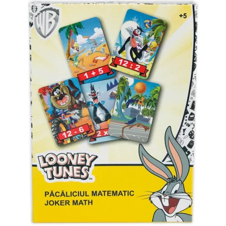 Cartile de joc, Pacalici Looney Tunes matematic contine 48 carti cu operatii matematice, o carte joker, tabla inmultirii, tabla adunarii si instructiuni de joc. Jocul trezeste interesul copiilor pentru invatarea matematicii.
